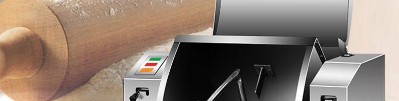 低噪音和麵機,利用攪拌器的轉動,使麵粉和水在麵鬥中形成小顆粒,粘黏形成大麵團塊。大容量翻轉麵鬥,采用優質不鏽鋼焊接製造,防腐蝕,食品接觸安全,符合食品生產安全標準。