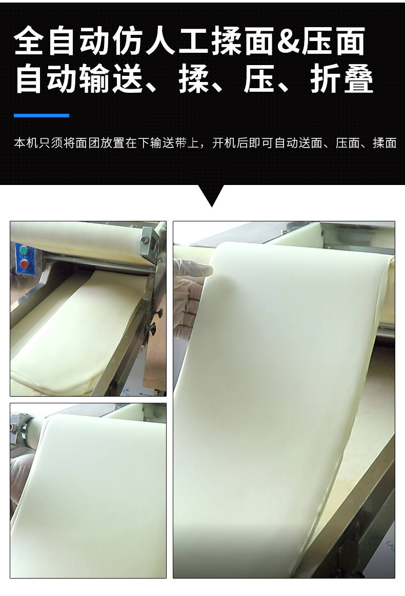 YMZD-350自動壓麵機,自動循環、厚薄可調。包子、餃子、饅頭,麵館等場所適用。啟動循環壓麵、揉麵。全自動仿人工揉麵,壓麵自動輸送、揉、壓、折疊。